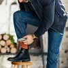 Apply leather polish, spray or cream to the leather to help maintain your boots. If you are using a polish for the first time, try it on an inconspicuous area of the boot to check whether it alters the colour or appearance.