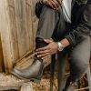Care Details First, remove any caked dirt on your boots with a soft bristled brush or damp cloth, and leave your boots to air dry. Please ensure that your boots are away from direct sunlight or any heaters, as they will dry out the leather.