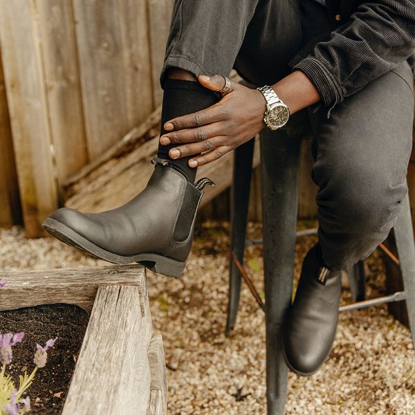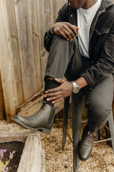Material and specificationsThe new ankle boot is the evolution of our dress series. Built specifically for city life, this boot features a lean profile and almond toe. Dress it up or down.Black premium leather