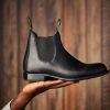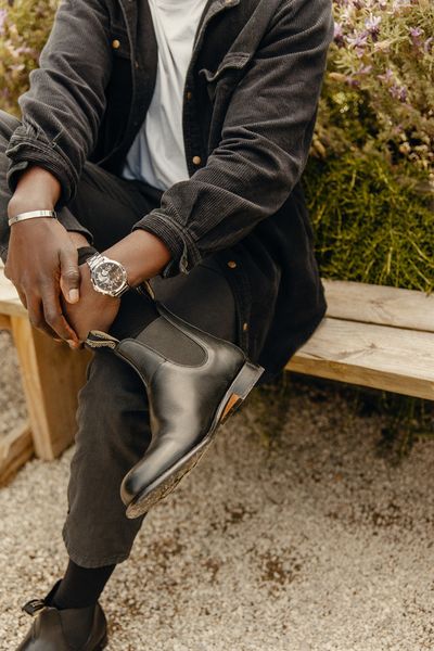 Material and specificationsOur premium Heritage series combines unparalleled craftsmanship with extreme comfort. The #152’s feature a Goodyear welt sole, premium supple leather, leather lining, black elastic and more.Black premium water-resistant leather
