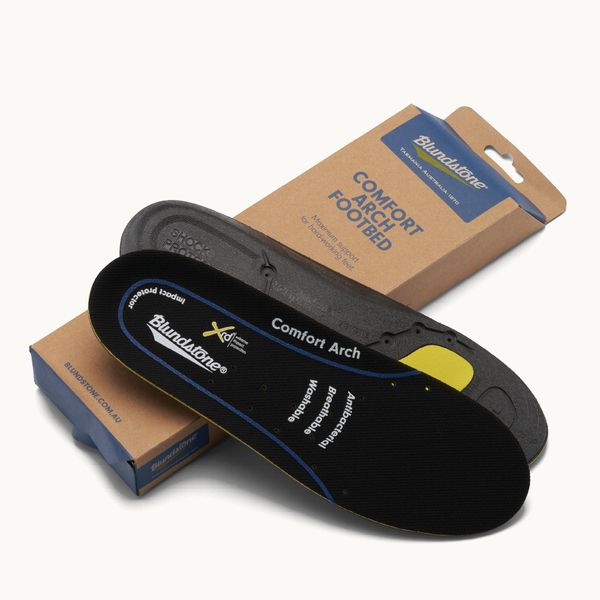 Material and specificationsThe Blundstone Comfort Arch Footbed features XRD® Technology inserts in the forepart to absorb up to 90% of the impact. Soft and cushioning, this premium insole provides unmatched comfort. Odor, fungus and bacteria resistant and breathable and washable. Suitable for Men’s or Women’s Blundstone boots. Shipping and Returns