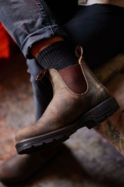 Material and specificationsOur premium leather Chelsea boots are available for men in our famed Rustic brown color. The best lightweight boots for comfort around town, or protection when off-road. The boots feature an elastic side and are leather lined with a cushioned midsole for additional comfort.Rustic brown premium water-resistant leather