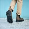 Lug sole (rubber) with deep grooves designed specifically to increase slip-resistance in varied environments