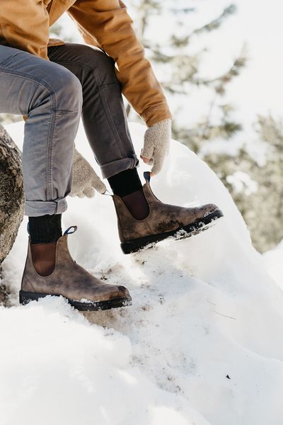 Material and specificationsStay warm all winter with these mens leather boots from Blundstone. Keep your feet warm through the cold season and stay in comfort with these waterproof and insulated thermal boots perfect for the outdoors whether in the snow or rain.Rustic brown premium waterproof* leather