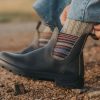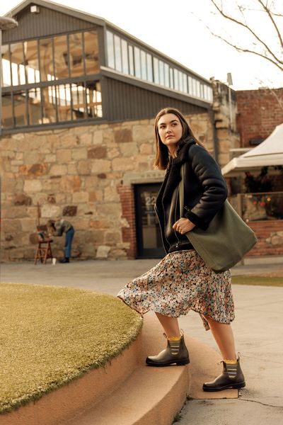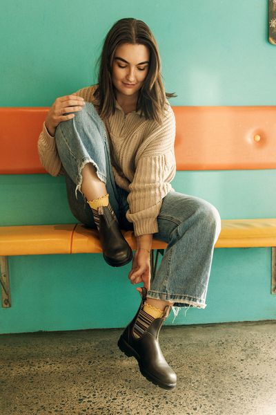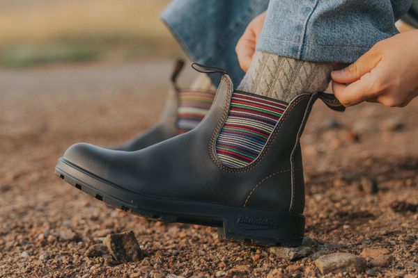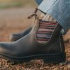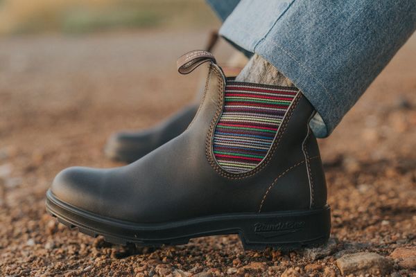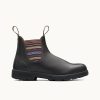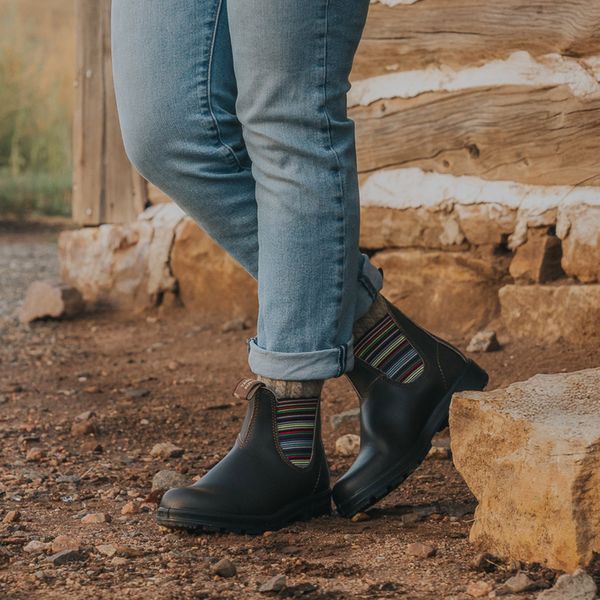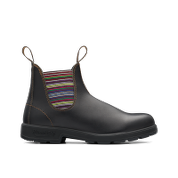 Material and specificationsChelsea boots from Blundstone that combine the traditional stout brown boot with a side of stripes and colors that give a unique modern angle to a tried and true tradition.Stout brown premium water-resistant leather